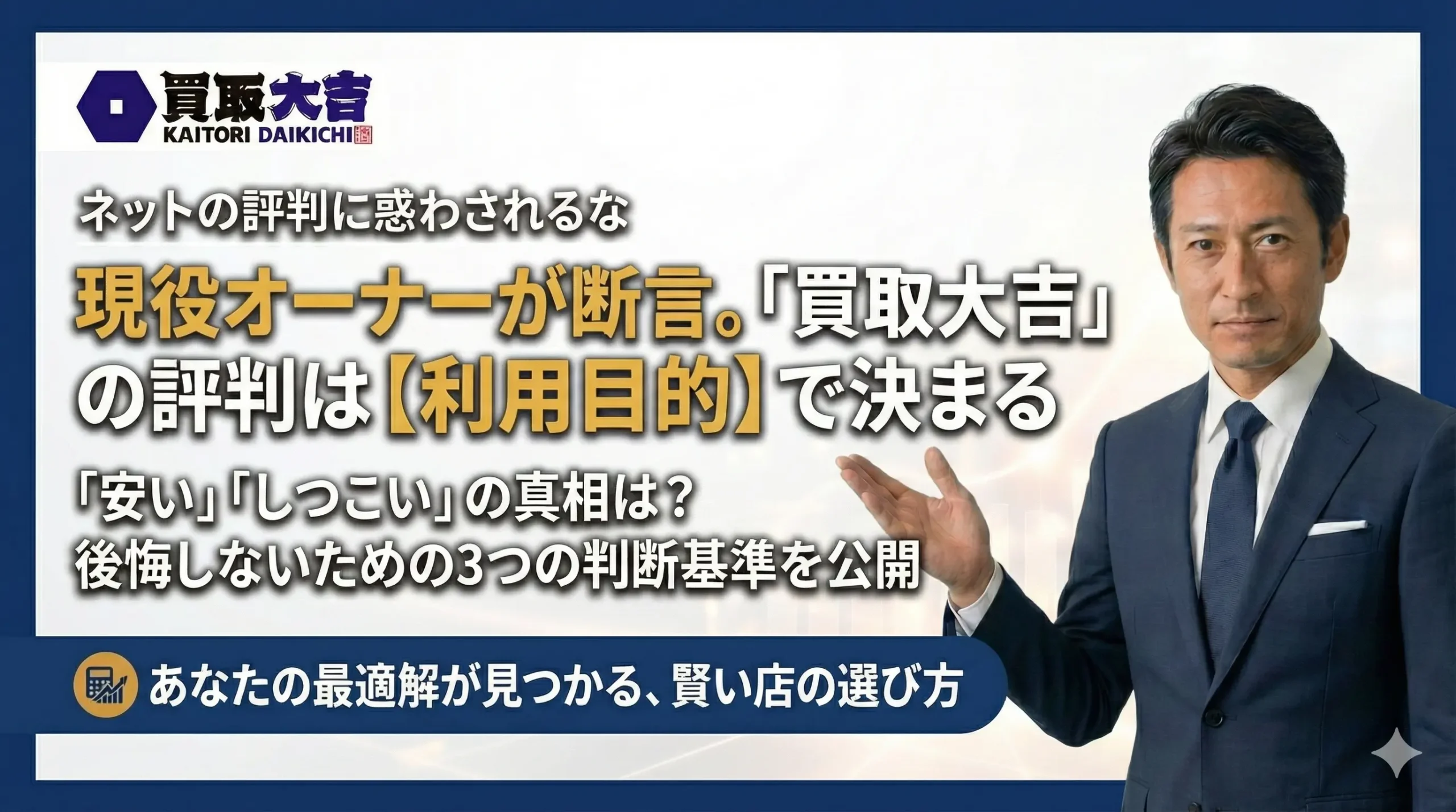 【現役オーナーが断言】買取大吉の評判は「利用目的」で決まるのが実態
